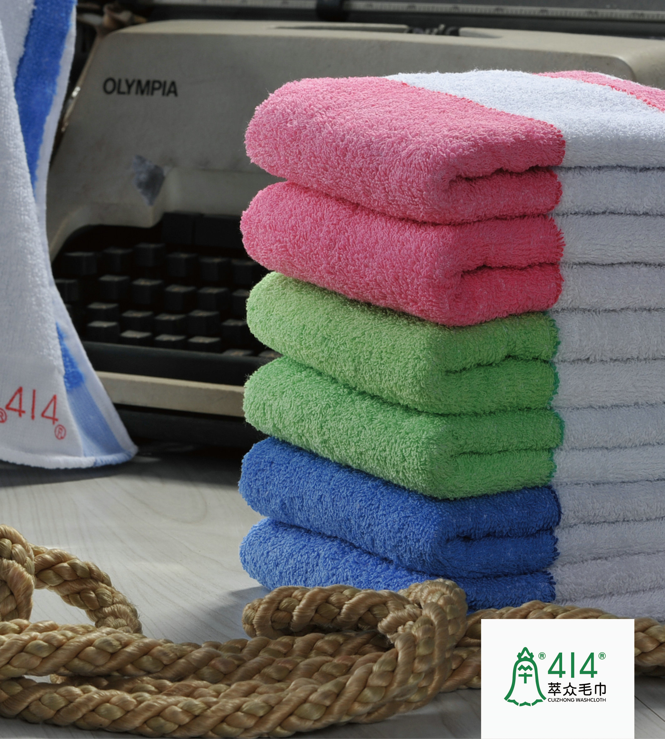 钟牌414 家喻户晓的毛巾品牌,创始于1937年,货号取用“试一试”的谐音“414”,用意是请大家来“试一试”,“使一世”。